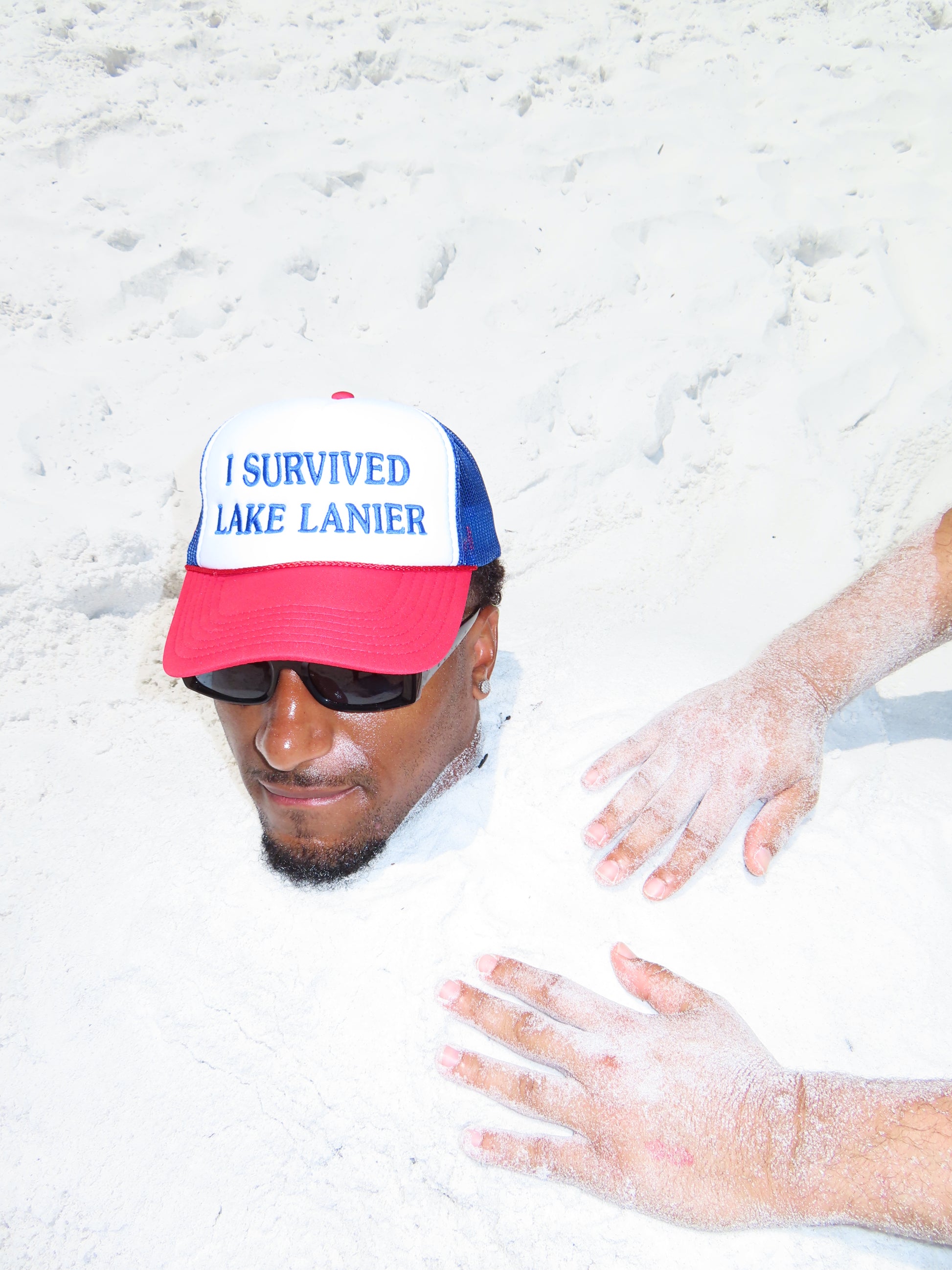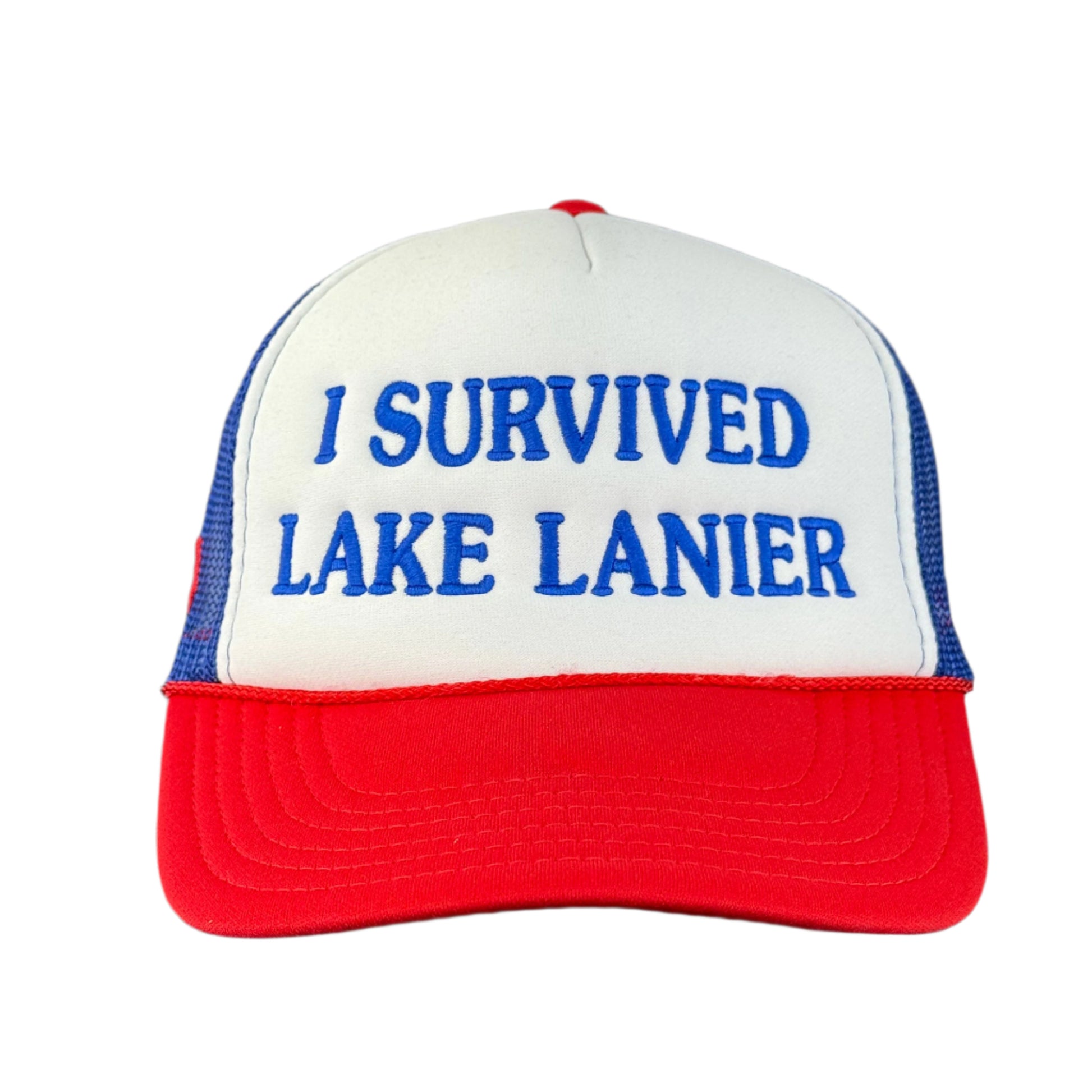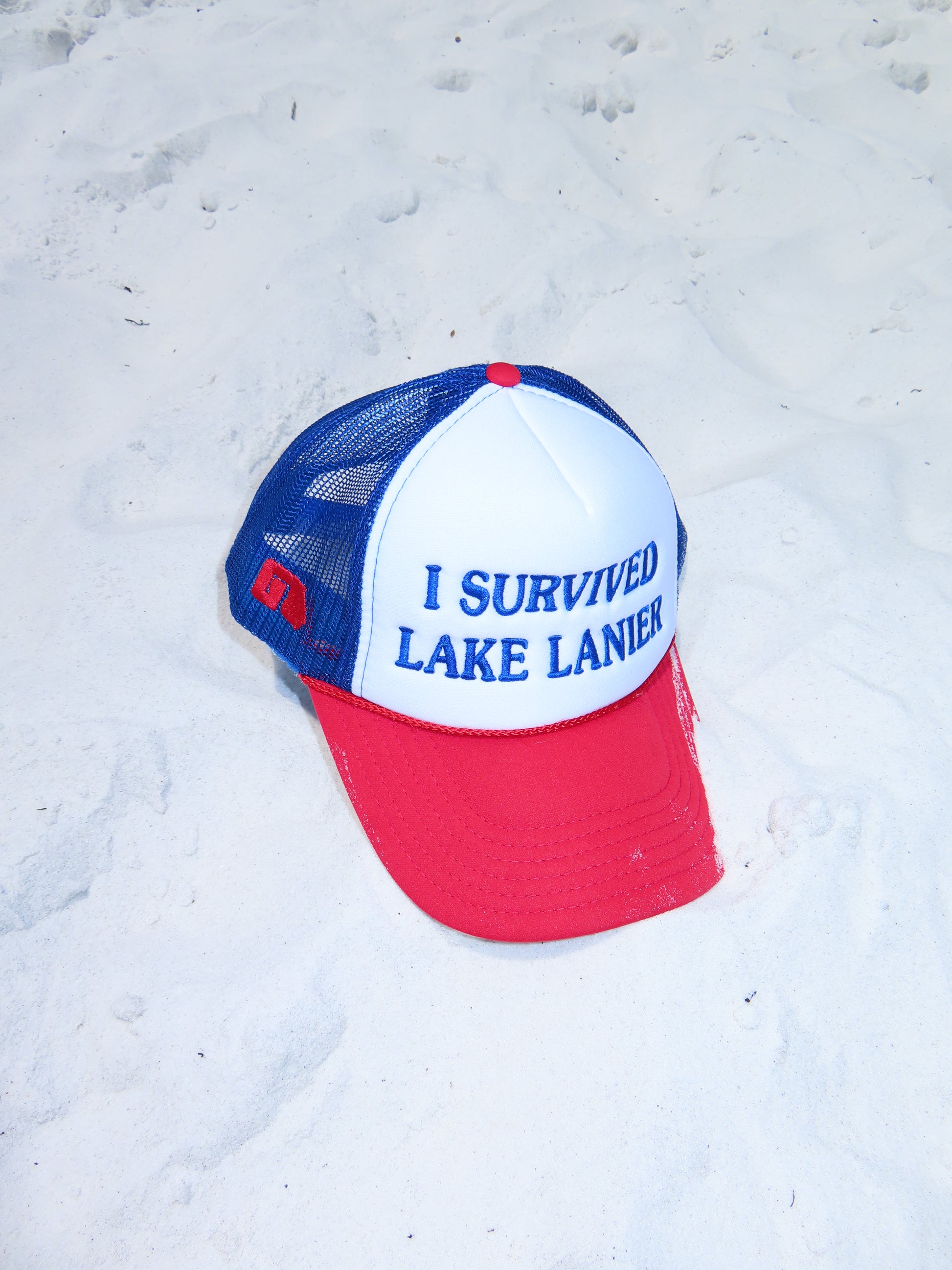 Whether you grew up hearing the rumors or experienced the eerie vibes yourself, this bold red, white, and blue trucker hat lets people know you made it out the water — with style.